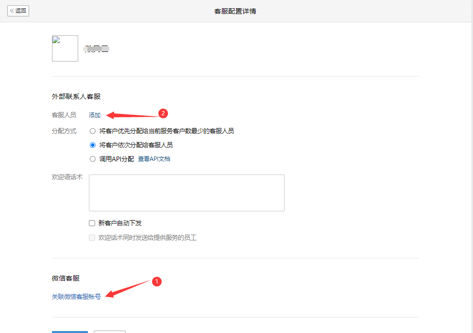 关联微信客服账号并添加客服人员
