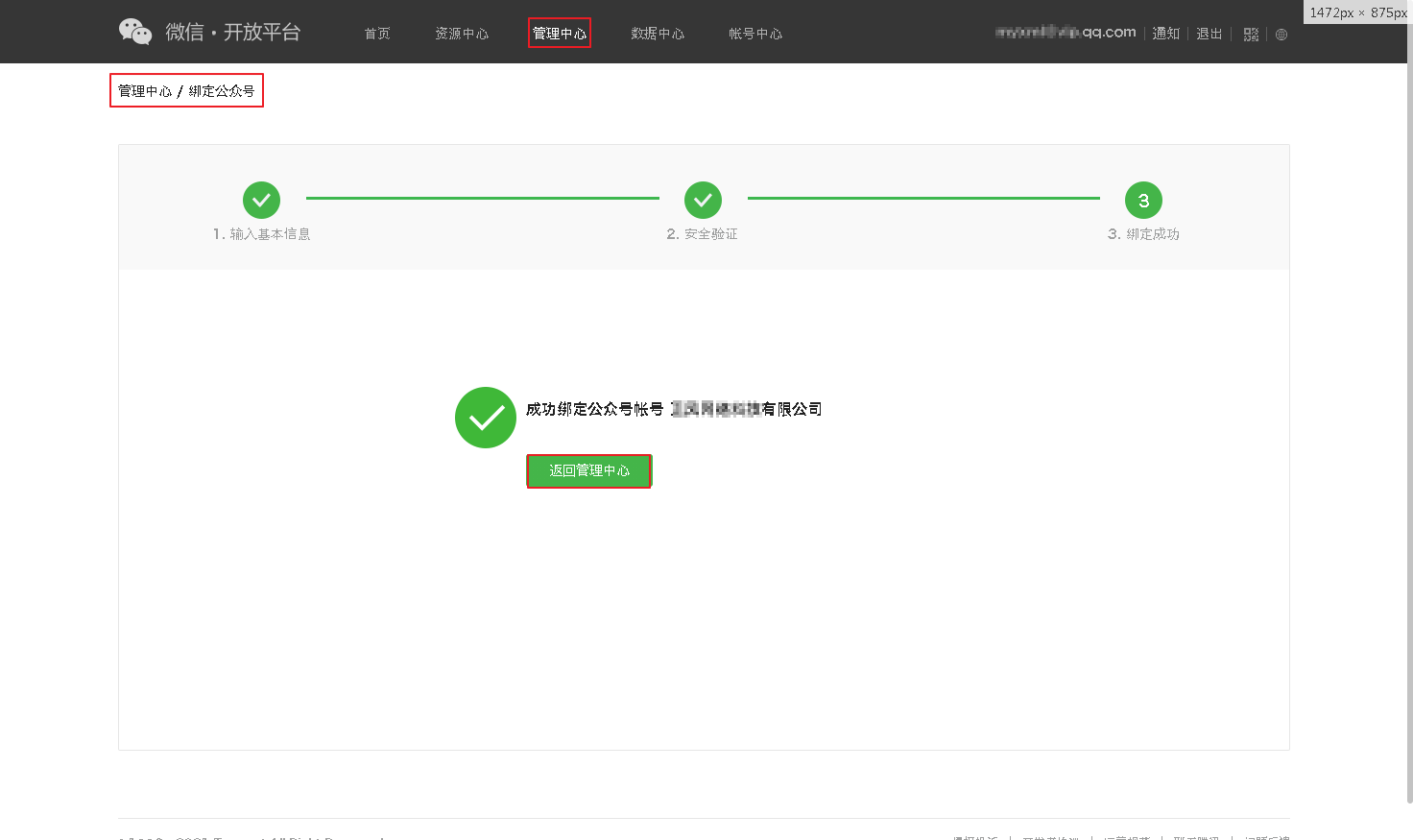 验证公众号的所有权,验证通过后即绑定成功。