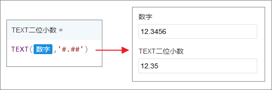 TEXT(12.3567,"#.##") 结果为 12.36
