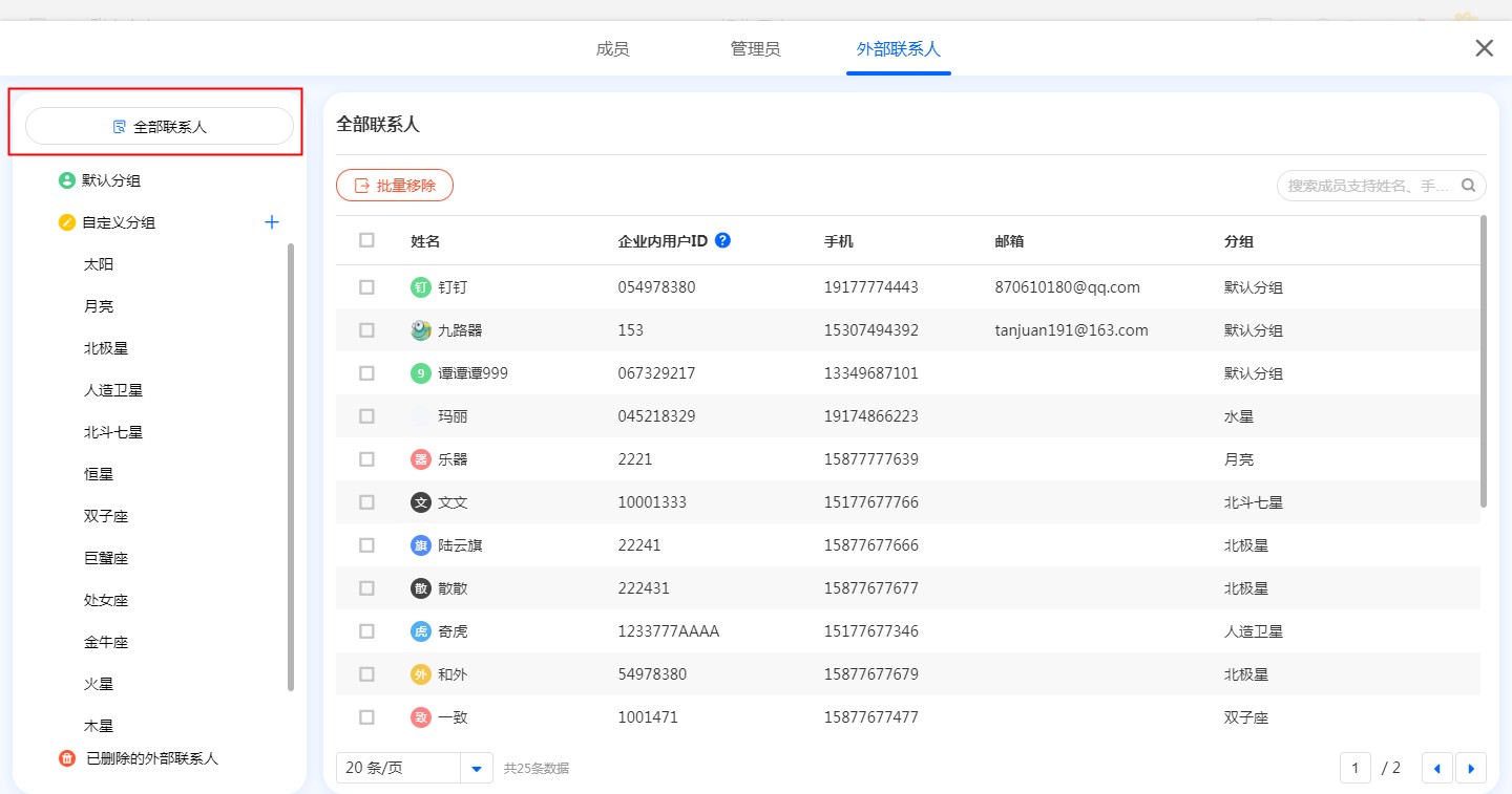 查看全部外部联系人