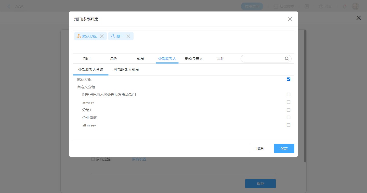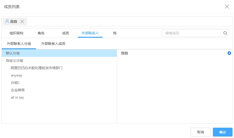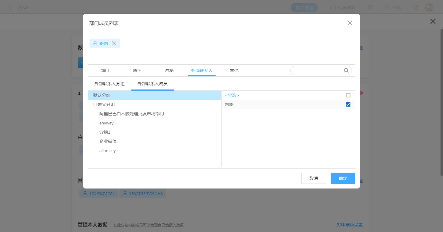 外部联系人使用与内部成员基本一致,都通过权限体系控制,即给指定外部联系人分配权限,他就能拥有此应用的权限。