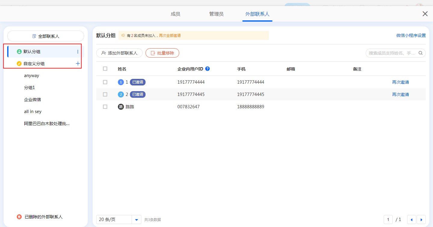 分组类似于内部组织架构中的部门,便于管理外部联系人。
