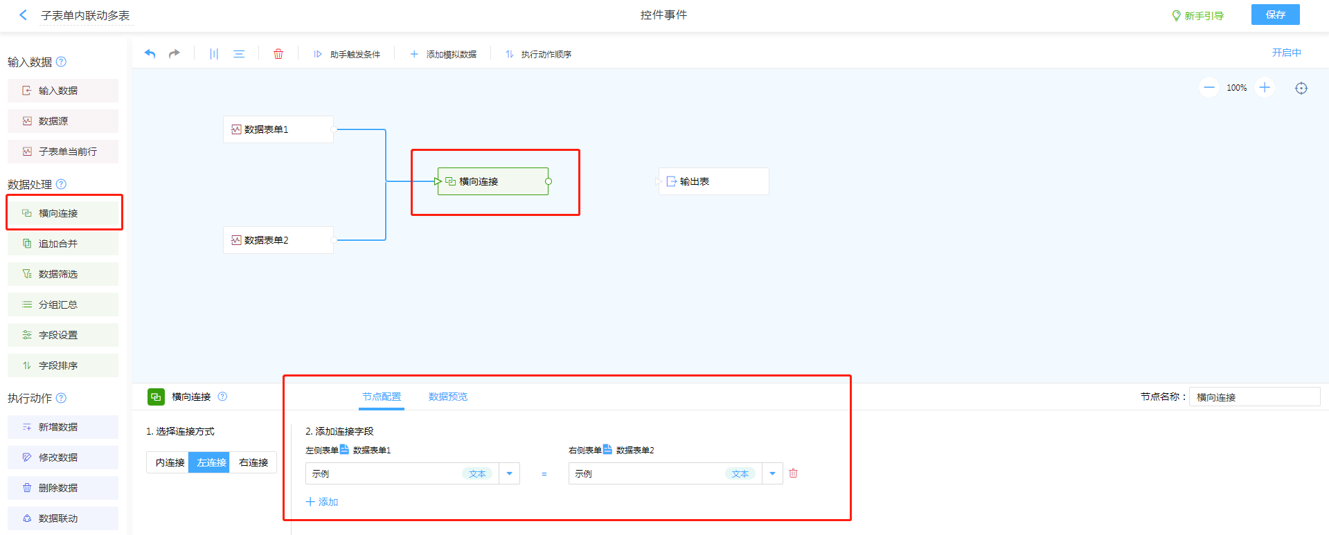 通过对控件进行数据助手配置,实现联动多个子表单进行数据调取。