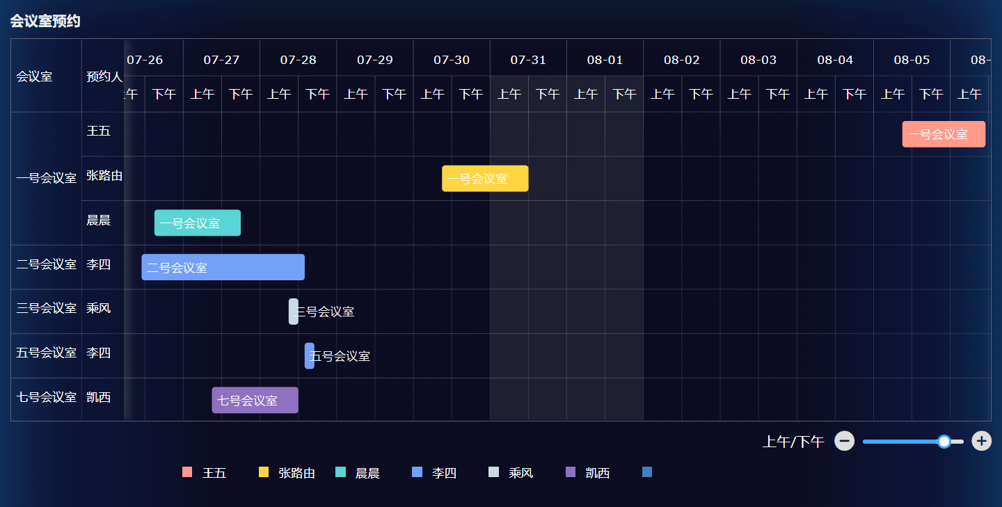 以会议室预约为例制作一个甘特图进行任务管理。