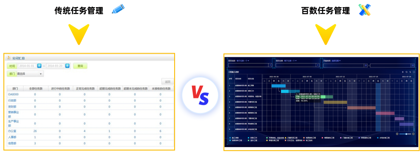 传统任务管理与百数任务管理对比 |