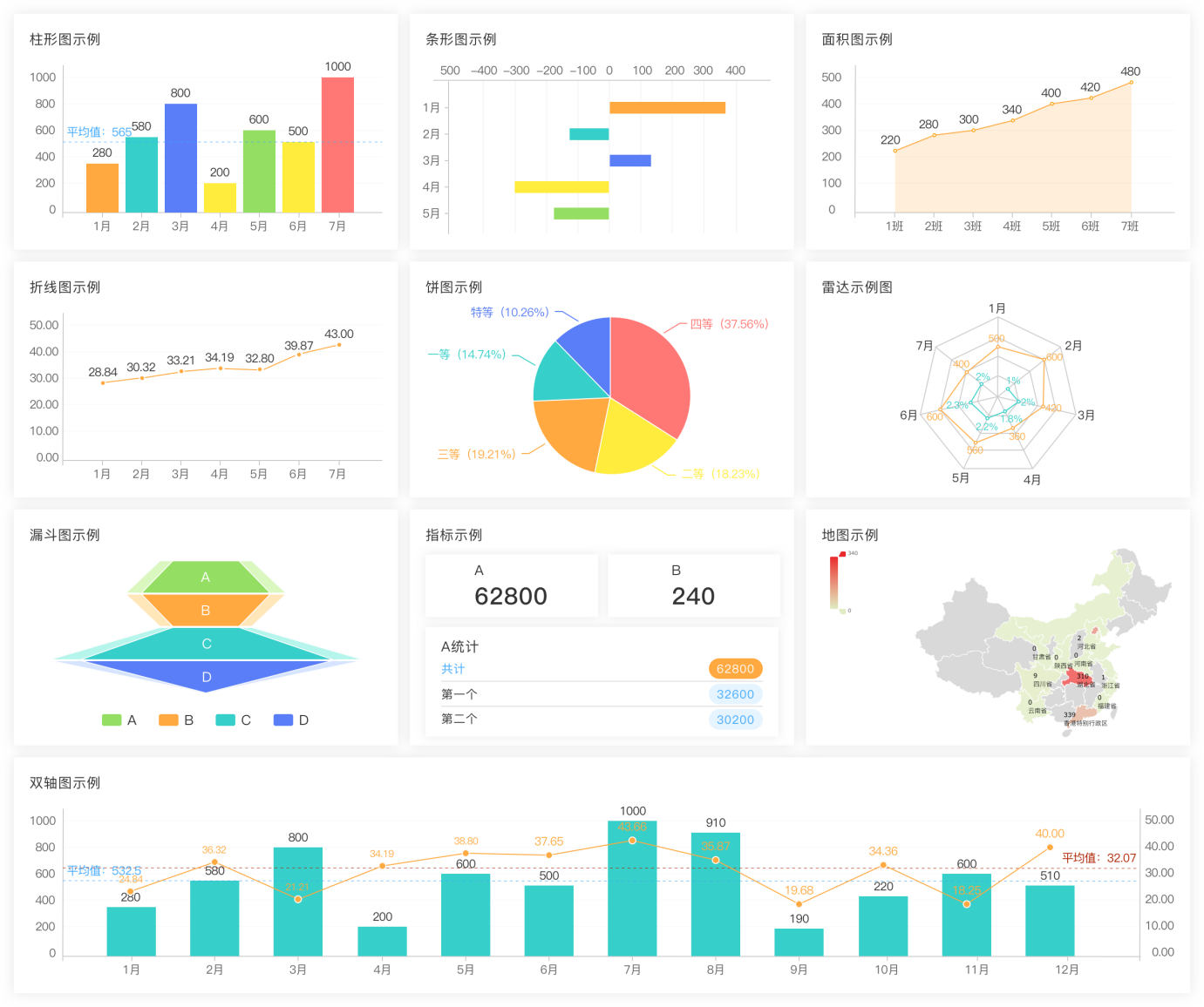 通过将销售数据转化为可视化图形报表,每个店铺的销售情况,无论是对于分类数据的汇总,还是对于销售数据的占比、趋势,都可以非常直观的展示出来。经营情况一目了然。
