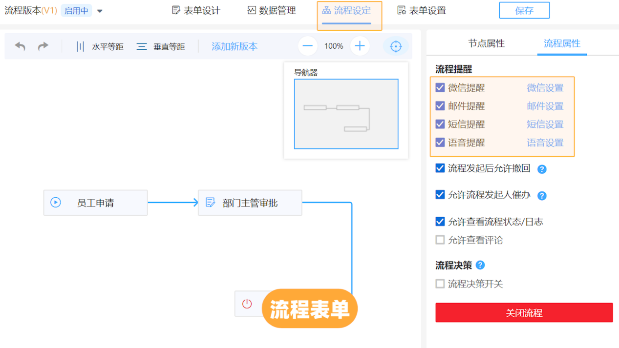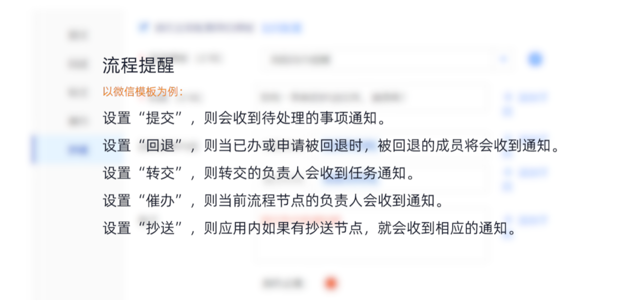 ②「流程表单」设置提醒: