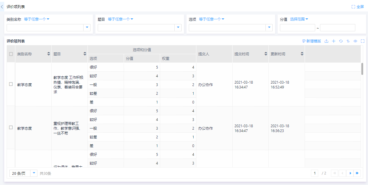 ② 帮助企业统计各项评价详情,综合各类标准筛选表现优异的员工