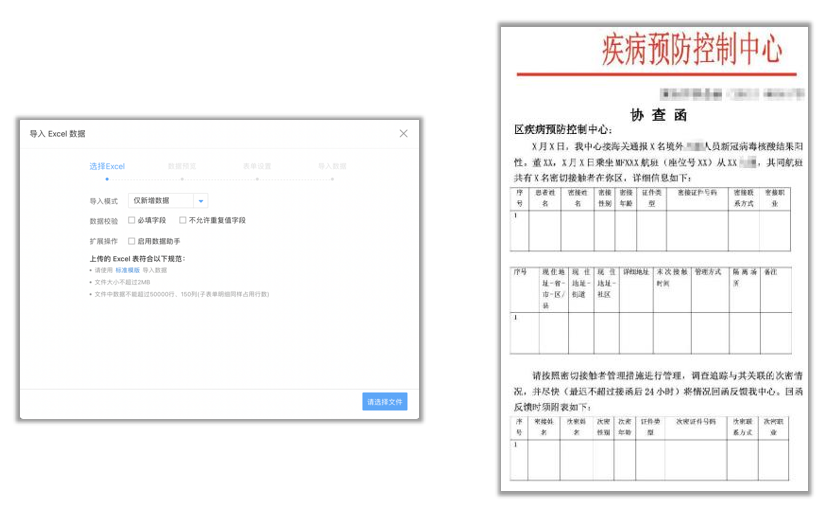 对于排查出比较多的次密人员,可通过系统进行批量新增次密接人员信息导入。发现新增病例及密接人员信息不匹配时,流程转给派公安机关进行协查-确认信息。