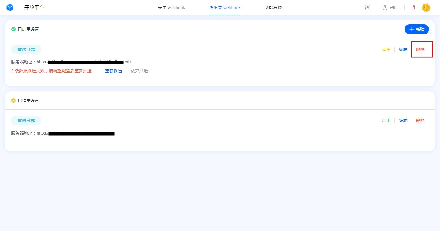 通讯录webhook管理