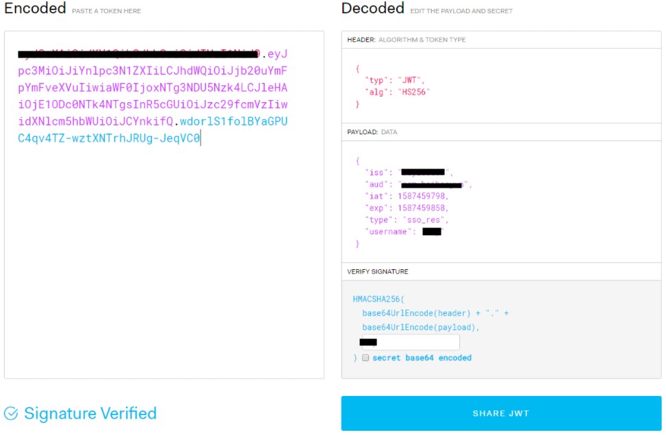 | iss | 可选, 管理员在本系统配置的 Issuer |