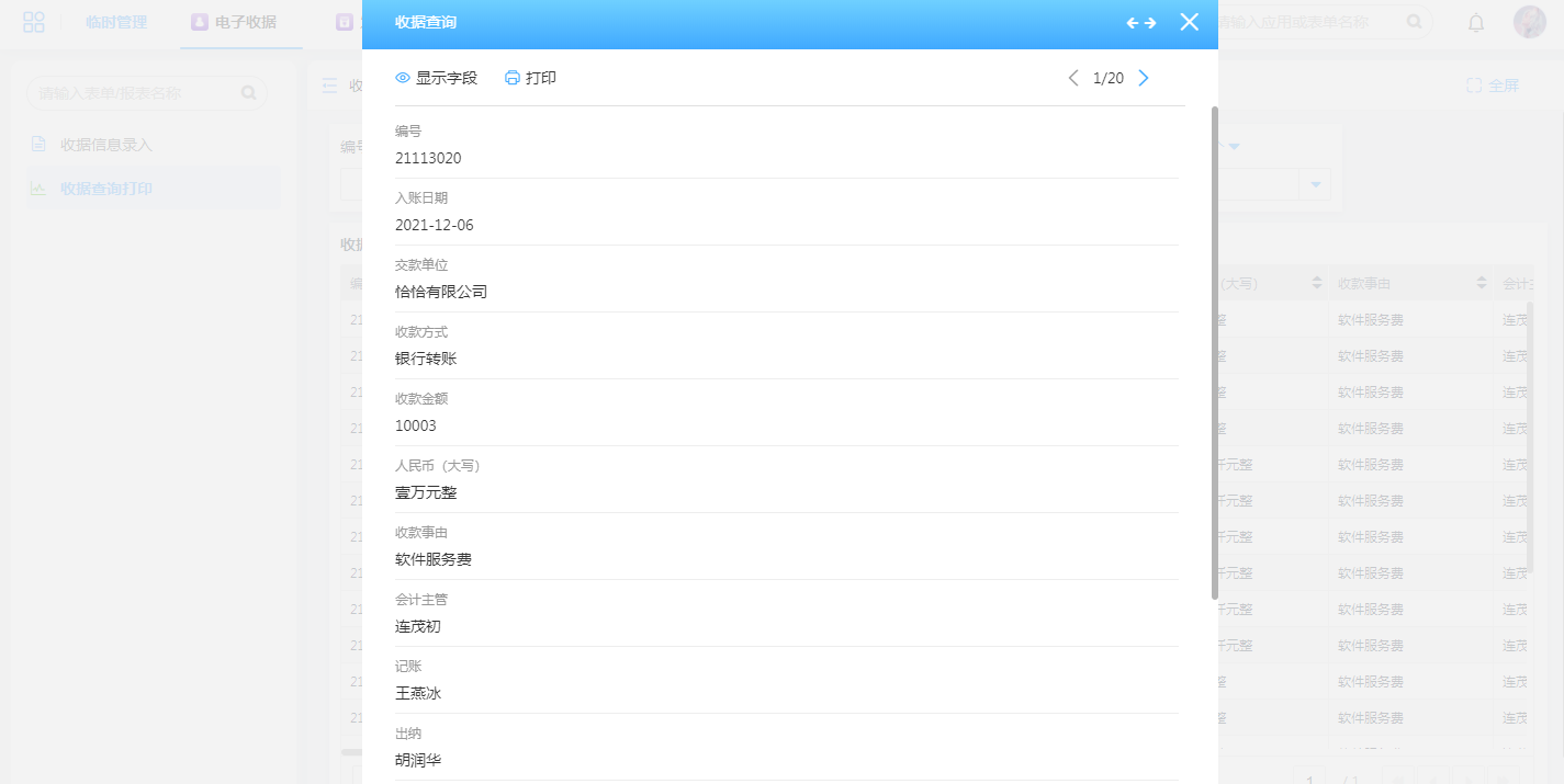 2.收据查询一键打印
