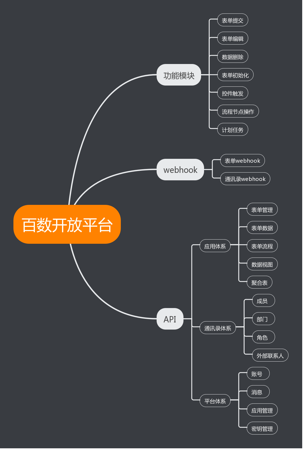 百数把创建账户、团队管理、流程、数据等所有的功能都由接口对外开放,做到了平台级的开放,利于平台之间做高度融合。