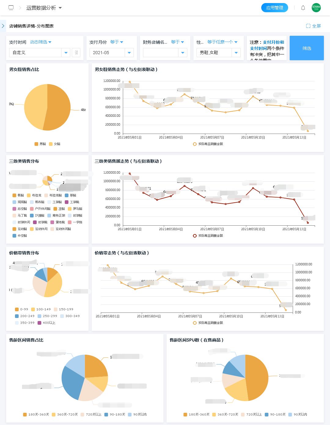 支持将千万销售数据汇总转化为可视化图形报表,将每个店铺的销售情况,通过清晰的图表,非常直观的展示出来。