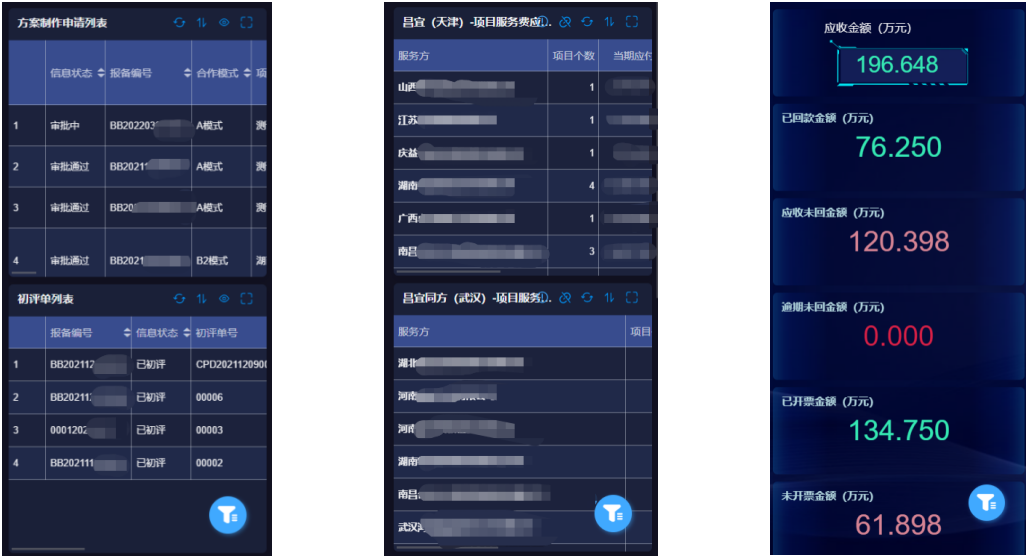 通过数据联动自动整合正在进行的项目费用相关细则,借助类型丰富的可视化图表并通过动态大屏展示,实时观察费用到账情况,及时通过数据反馈及时发现问题并解决问题。