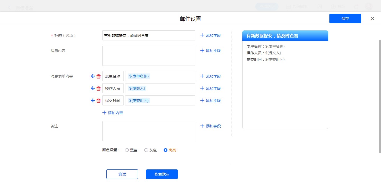 用户可以设计消息模板,来自定义消息内容,详情参考邮件消息模板。