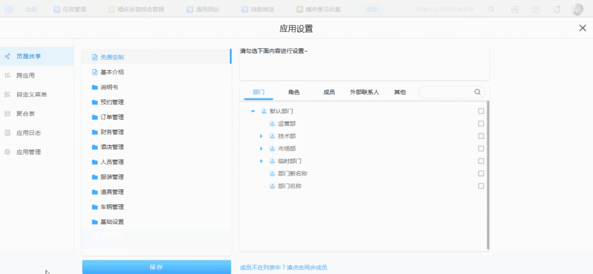 操作步骤: 【点击设置】——【页面共享】——【选择任意一个表单或报表】——【勾选被共享的成员账号】
