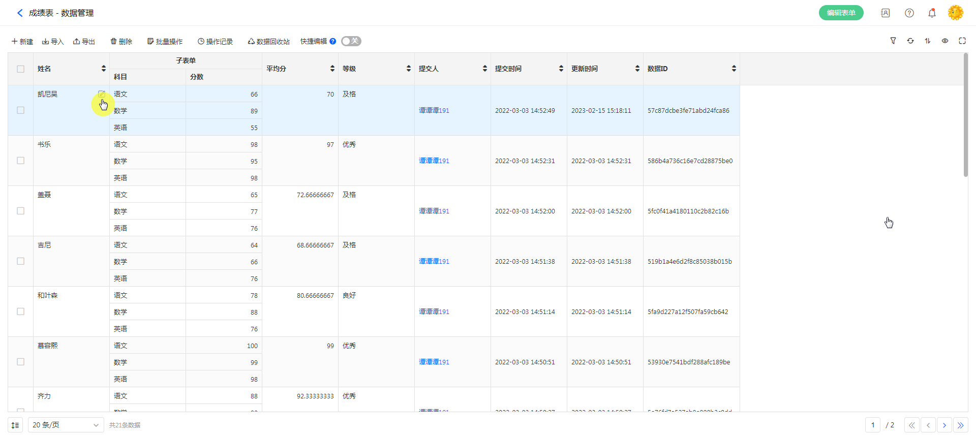 在电脑端编辑数据时,支持直接在表格上快捷编辑数据,无需点击数据详情。