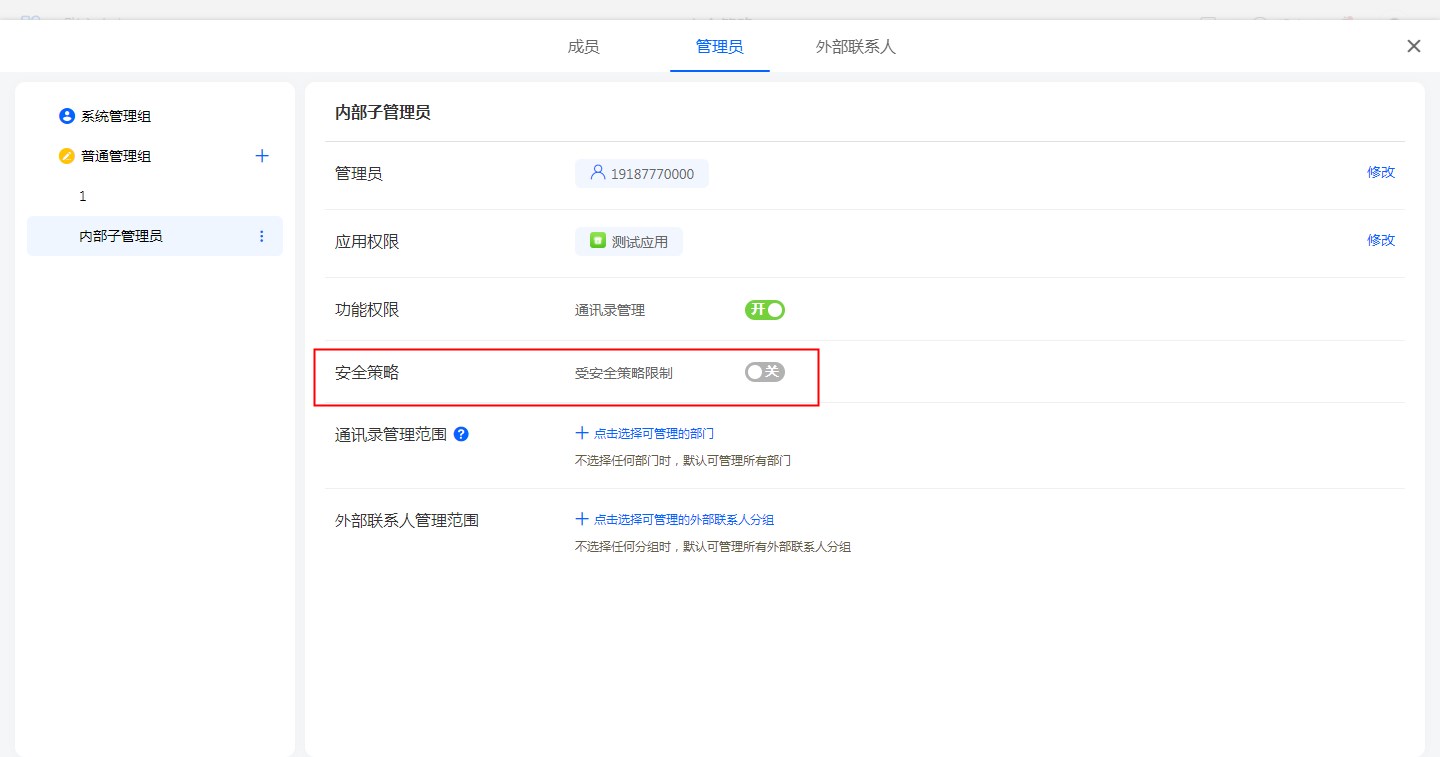 【头像】->【账户中心】->【安全策略】,并添加相应成员设置;