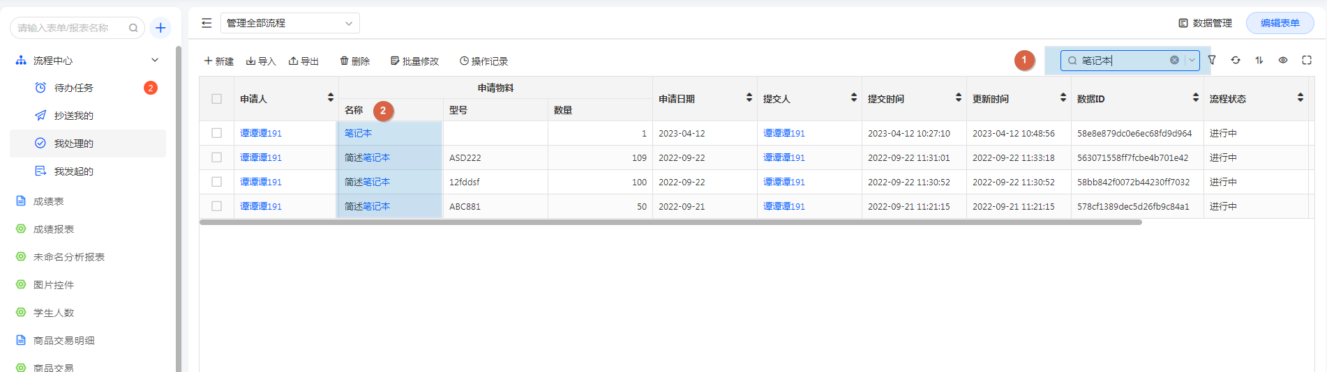 当数据量较大时,数据管理页可以通过关键词搜索快速检索需要查看的数据。