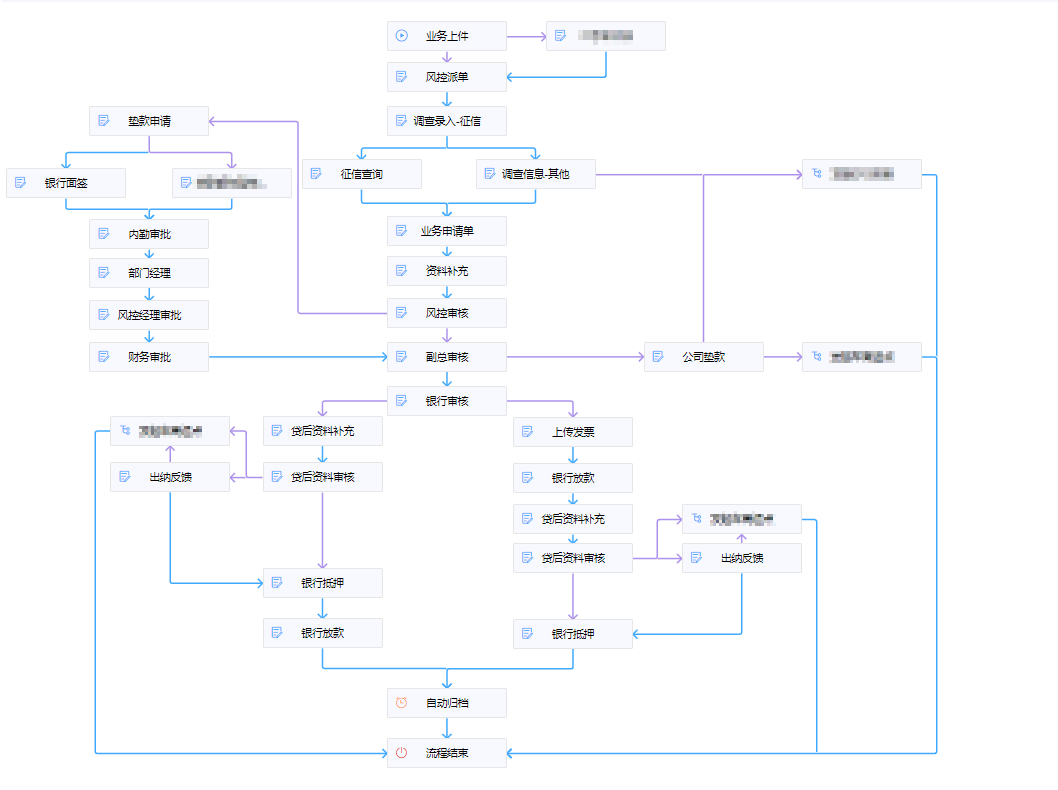 则上级节点:部门审批和人事部审批 两个节点的负责人都对流程进行审核,才会进入下级节点:财务放款。