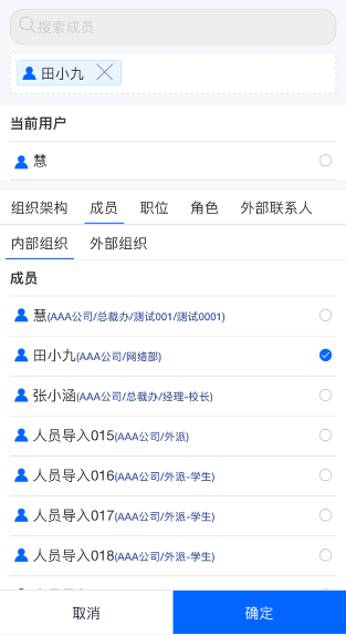 - 选择数据的面板中,支持模糊搜索及筛选条件搜索。