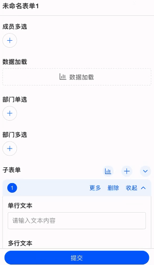 - 子表单行字段 支持数据加载,单行加载的数据只会填充当前行。