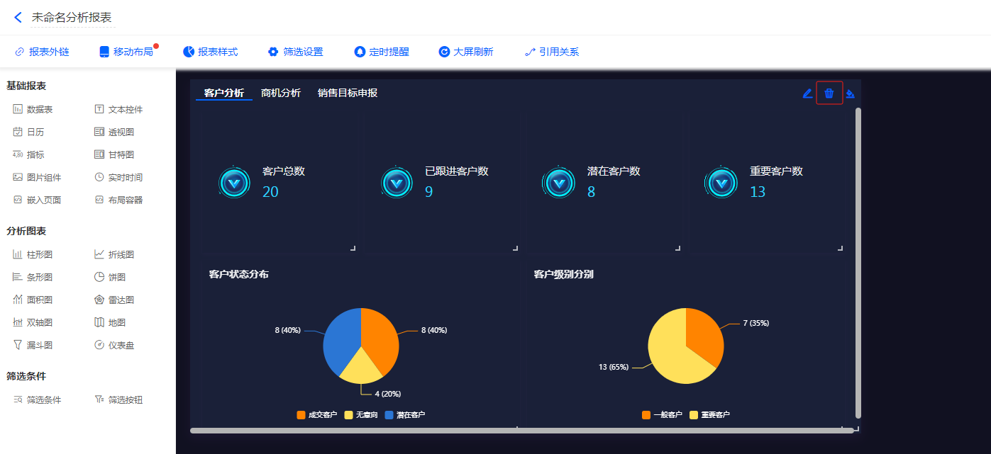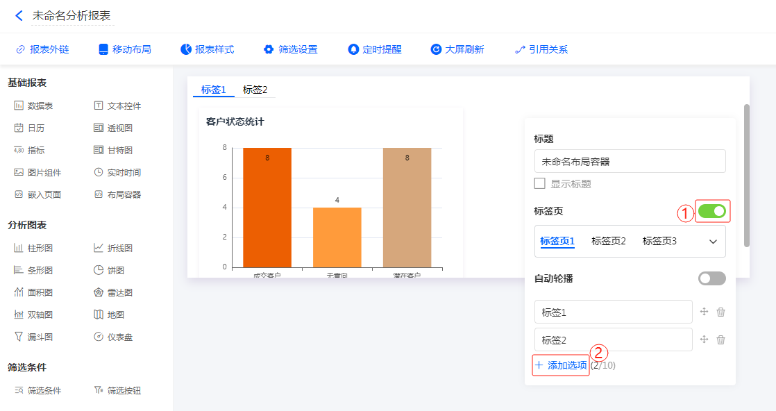 添加基础报表/分析图表组件
