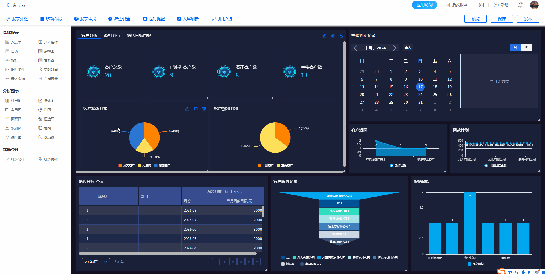 5)报表最多可添加50个图表/组件,布局容器组件也受此限制。