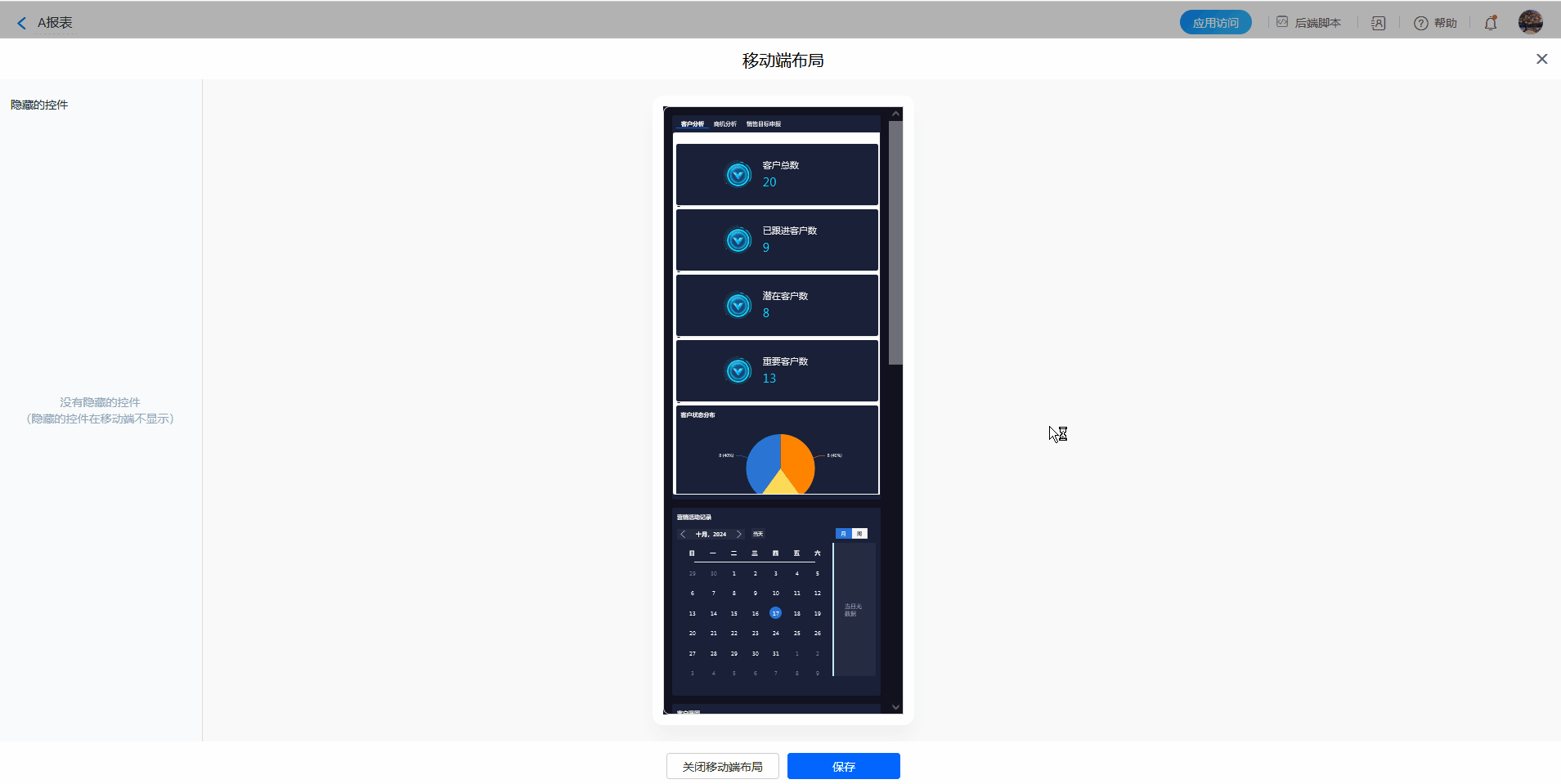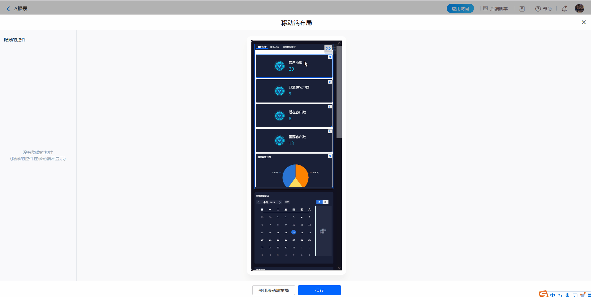6)移动布局中 容器不能跨标签调整位置,时间组件在移动布局中不显示。