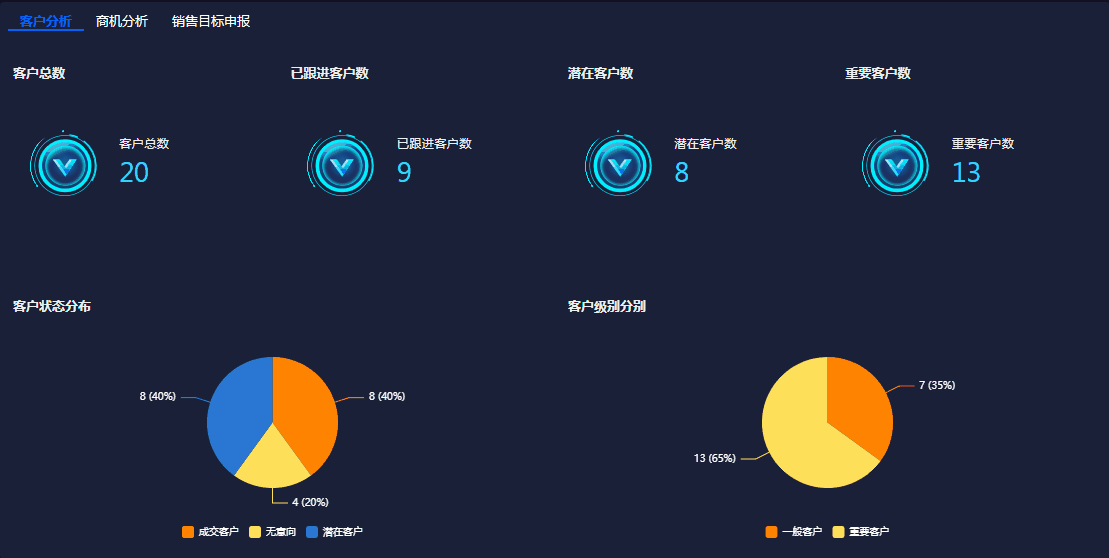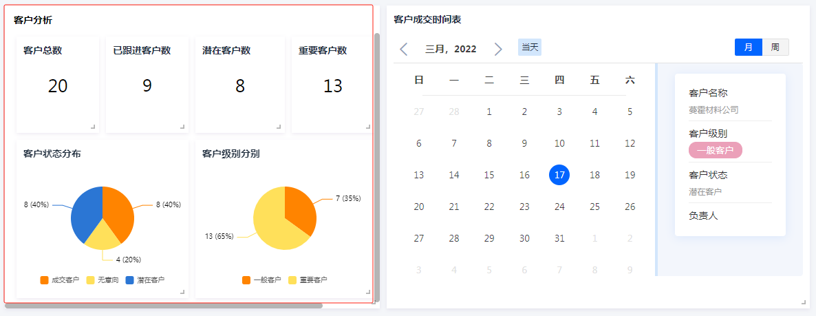 如下图,将客户分析相关数据,集中放在一个布局容器中进行展示:
