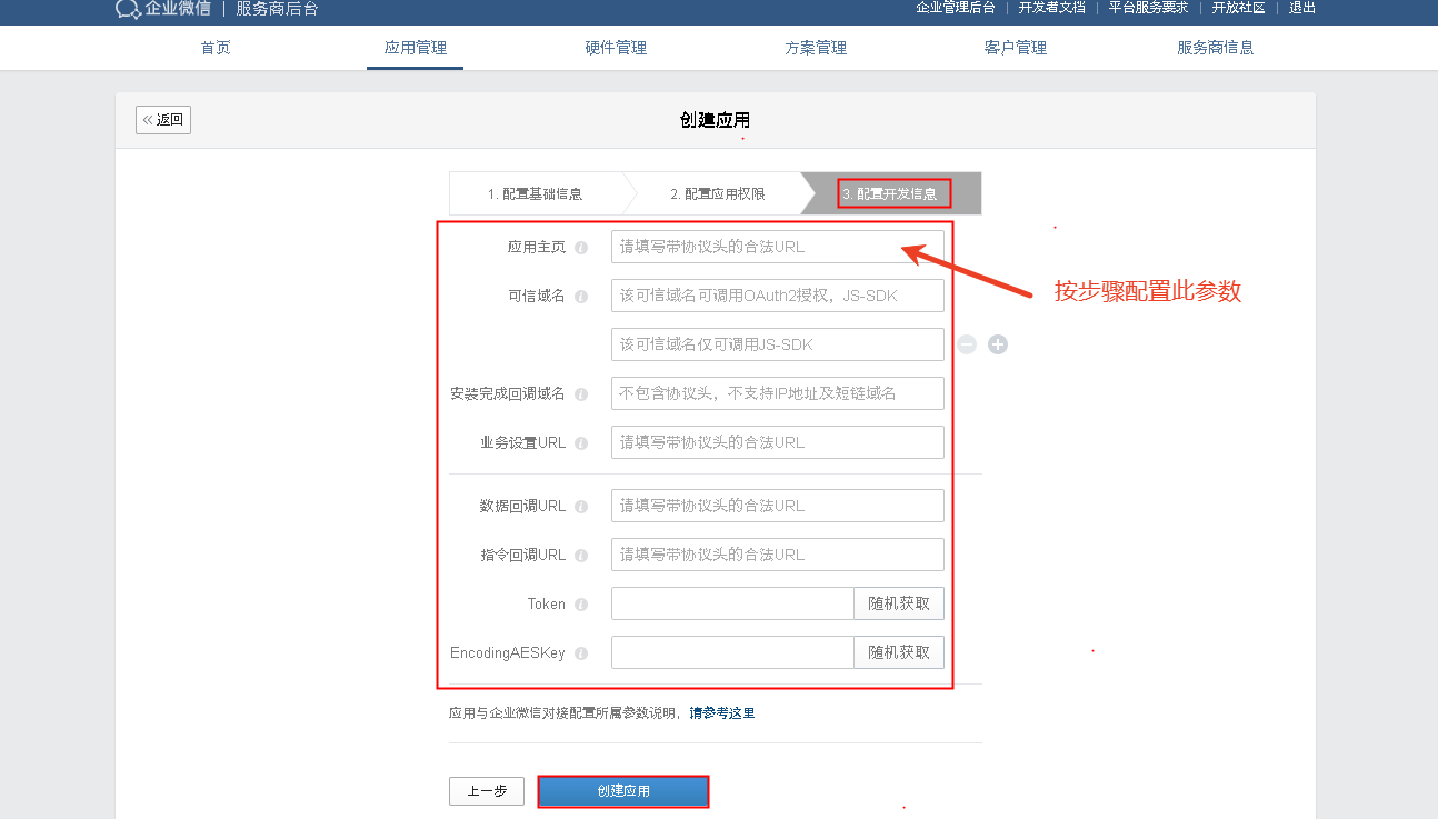 在企业微信中创建应用的步骤与企业微信应用第三方模式配置基本一致,注意应用主页需要按以下步骤配置:
