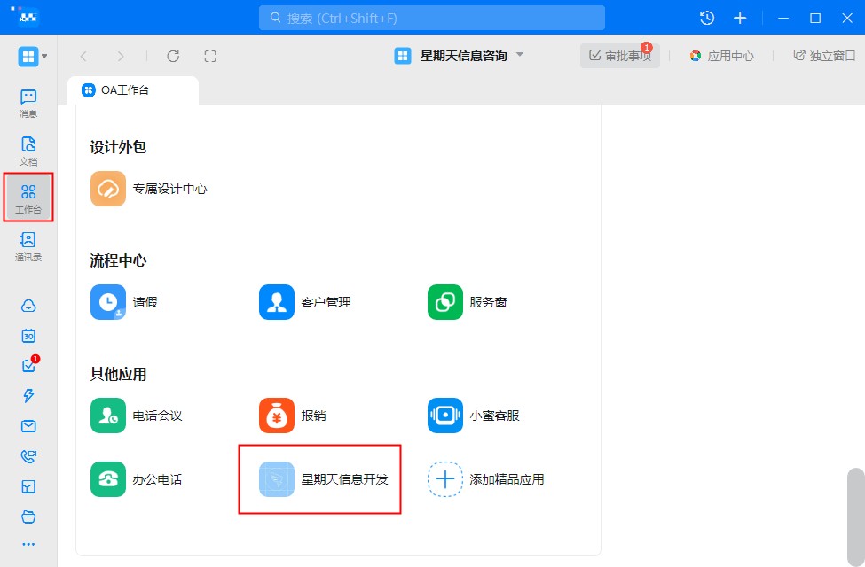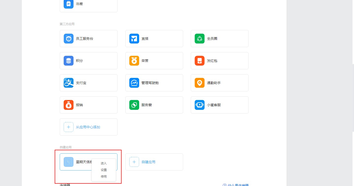 - 在工作台-其他应用下,找到创建的应用,点击该应用,可直接进入系统。