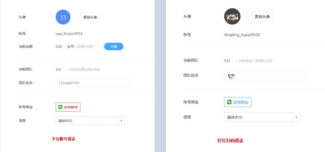 - 与钉钉绑定的系统账号权益不变,绑定/解绑钉钉不会影响系统账号的权益