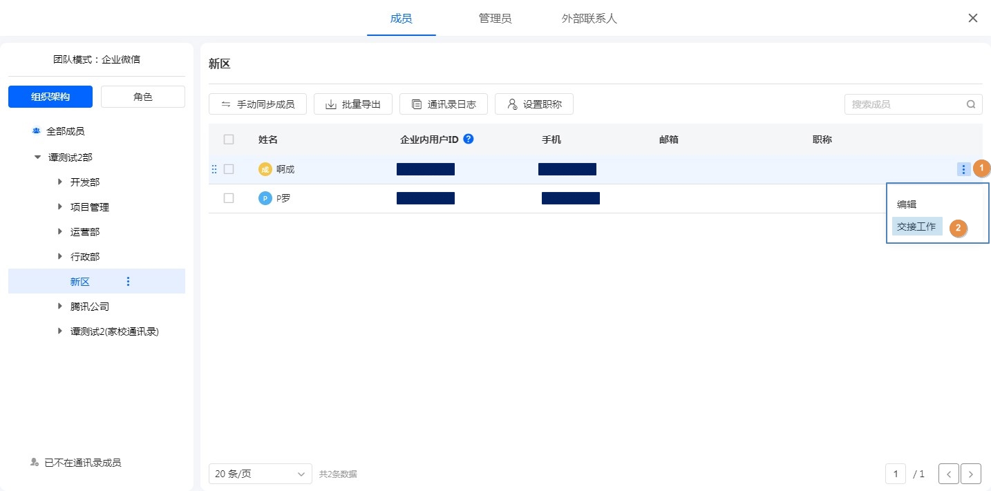 在企业微信管理后台操作组织架构及成员信息时,人员同步至通讯录再同步到表单通讯录中