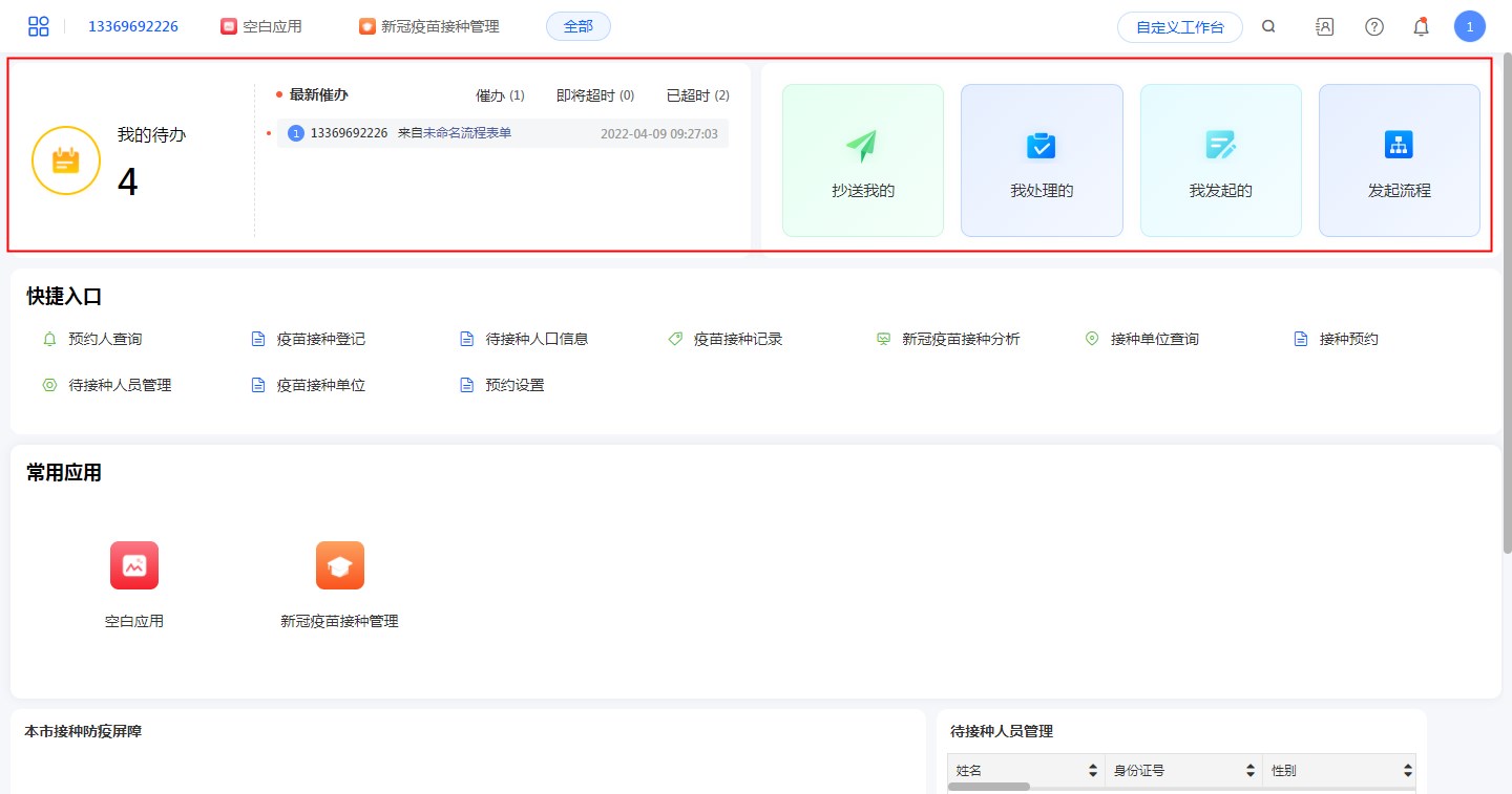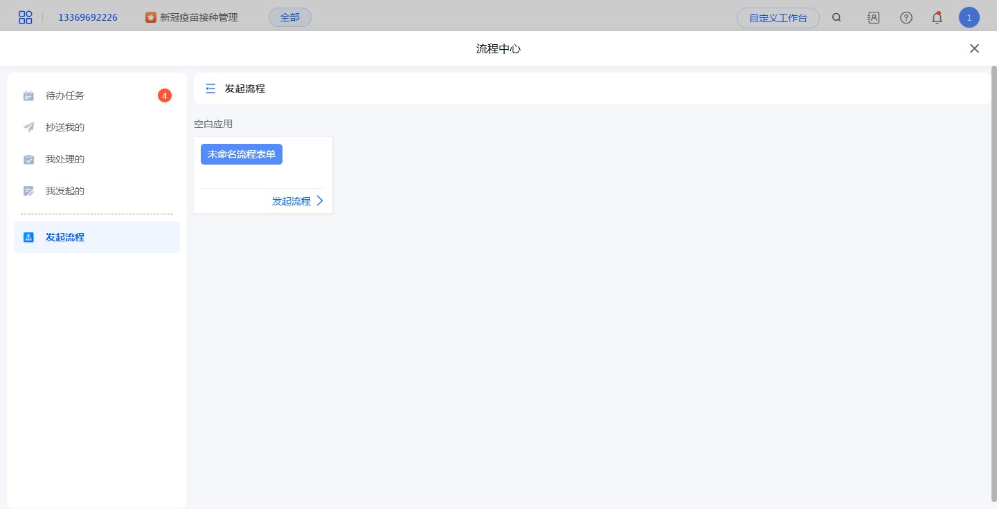 进入应用内部访问页面,可以查看此应用的待处理的任务、个人发起的任务、个人已处理的任务以及抄送给个人的相关任务,详见:流程使用。