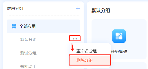 对于不需要的分组可以进行删除,删除前需要将当前分类下的应用清空。