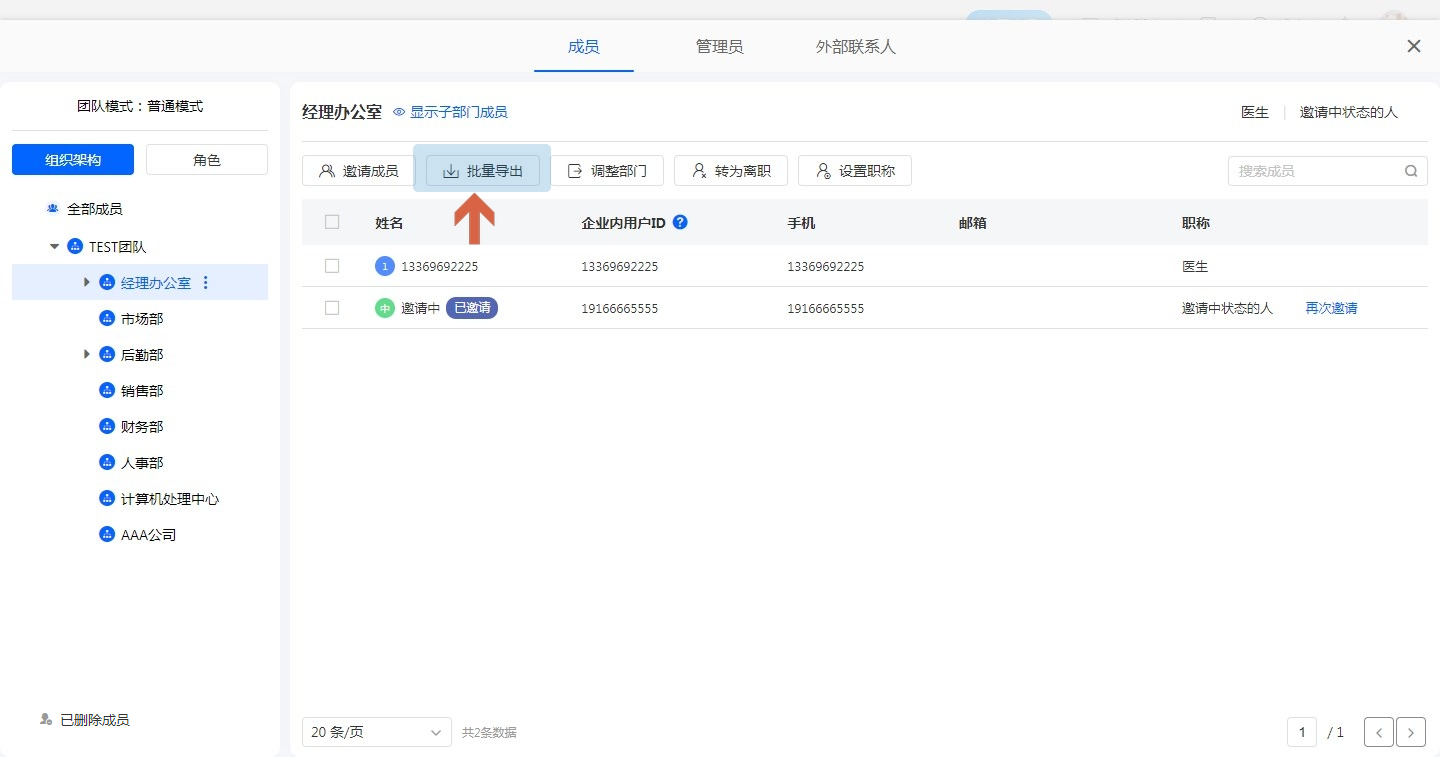 批量导出成员