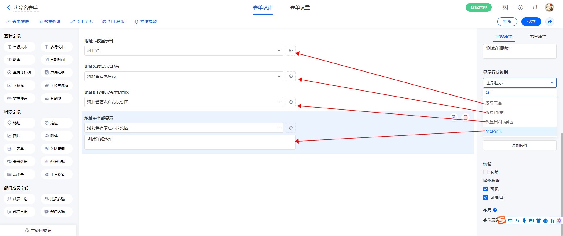 当地址字段内容改版触发控件扩展或相关公式联动时,按配置的模式进行触发。之前的版本是省市县/详细地址内容改版都触发。