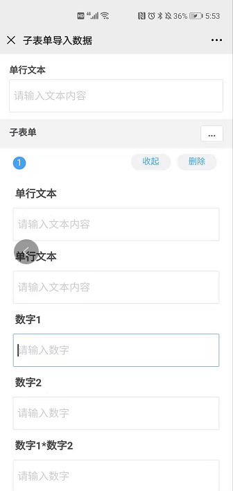 子表单内某一字段为子表单数据标题,在移动端使用时,无需点开子表单数据即可直接看到子表单内的指定字段信息。