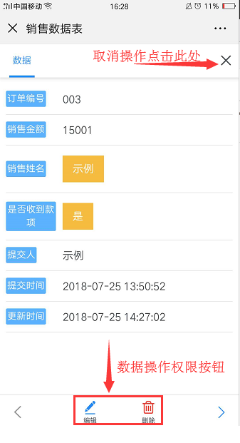 在数据详情的页面里,可以做【编辑数据】、【删除数据】、【取消】操作。
