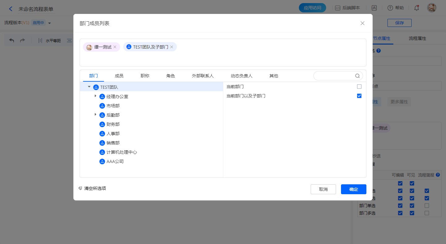 即该部门的所有成员作为节点负责人,可选择部门或者部门的子部门