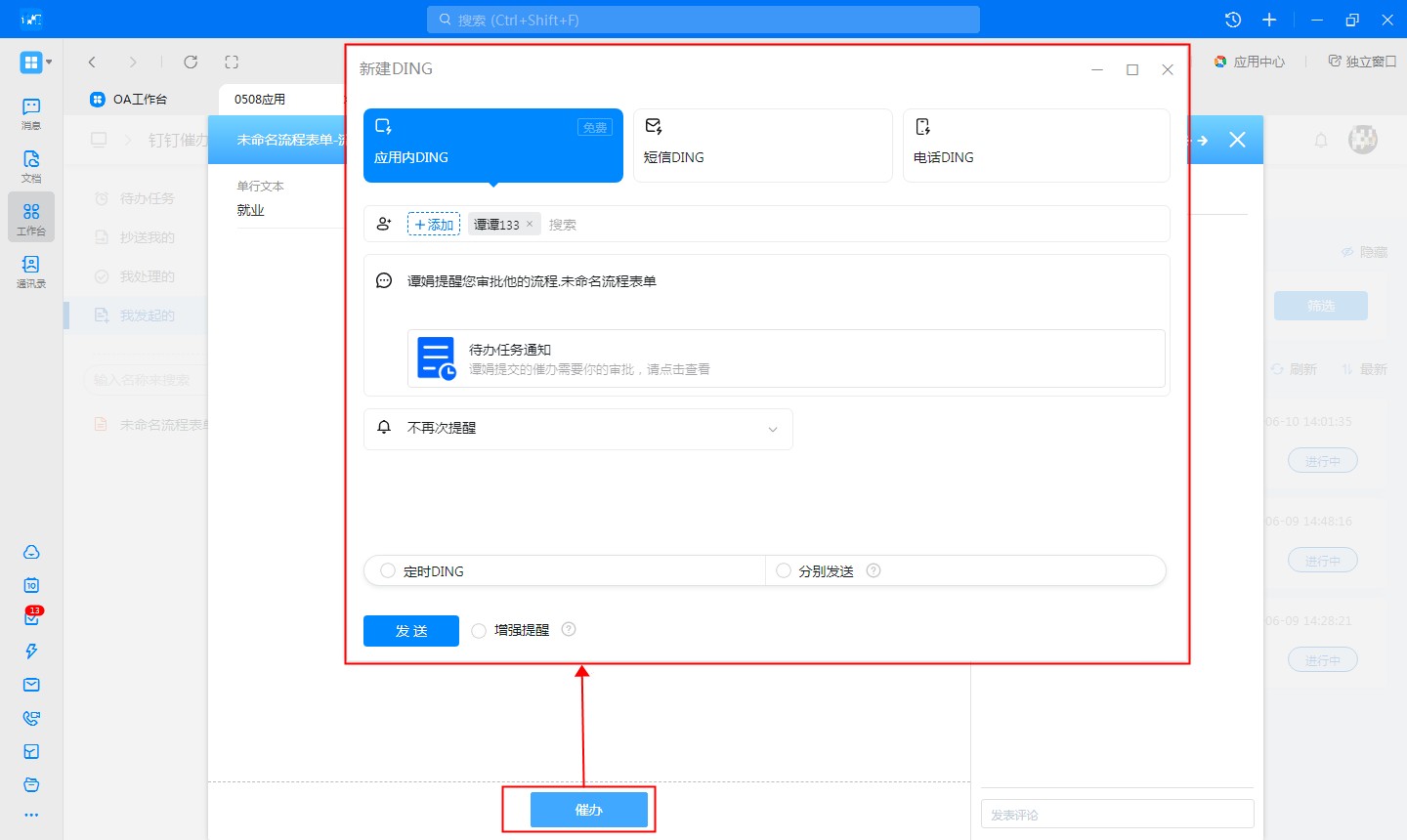 在钉钉中进行催办