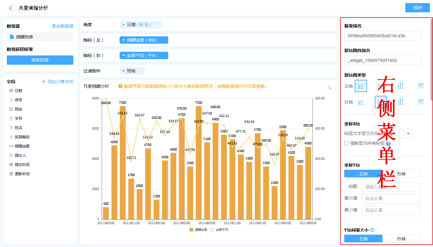 数据源就是指当前双轴图表的数据来源,可以是表单、数据视图。
