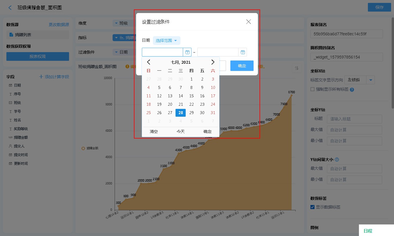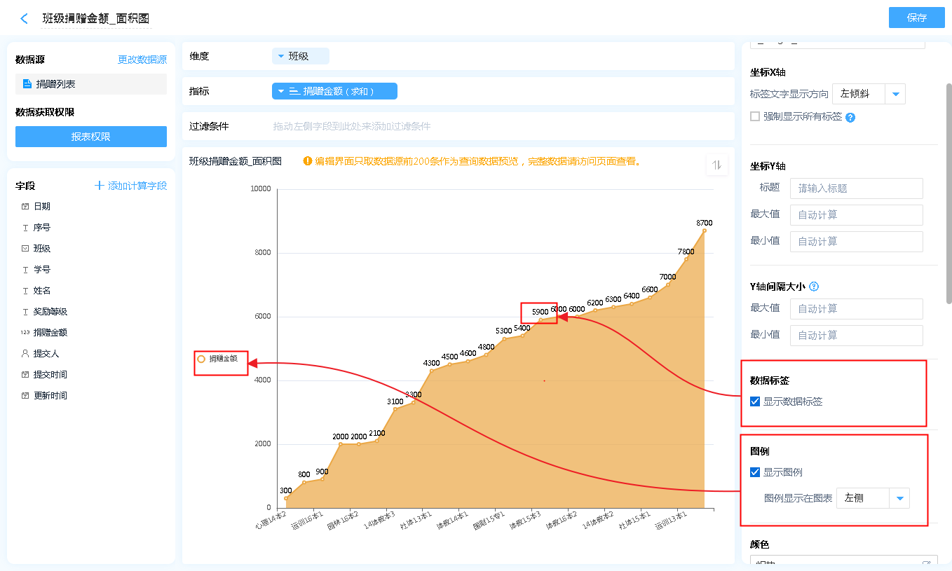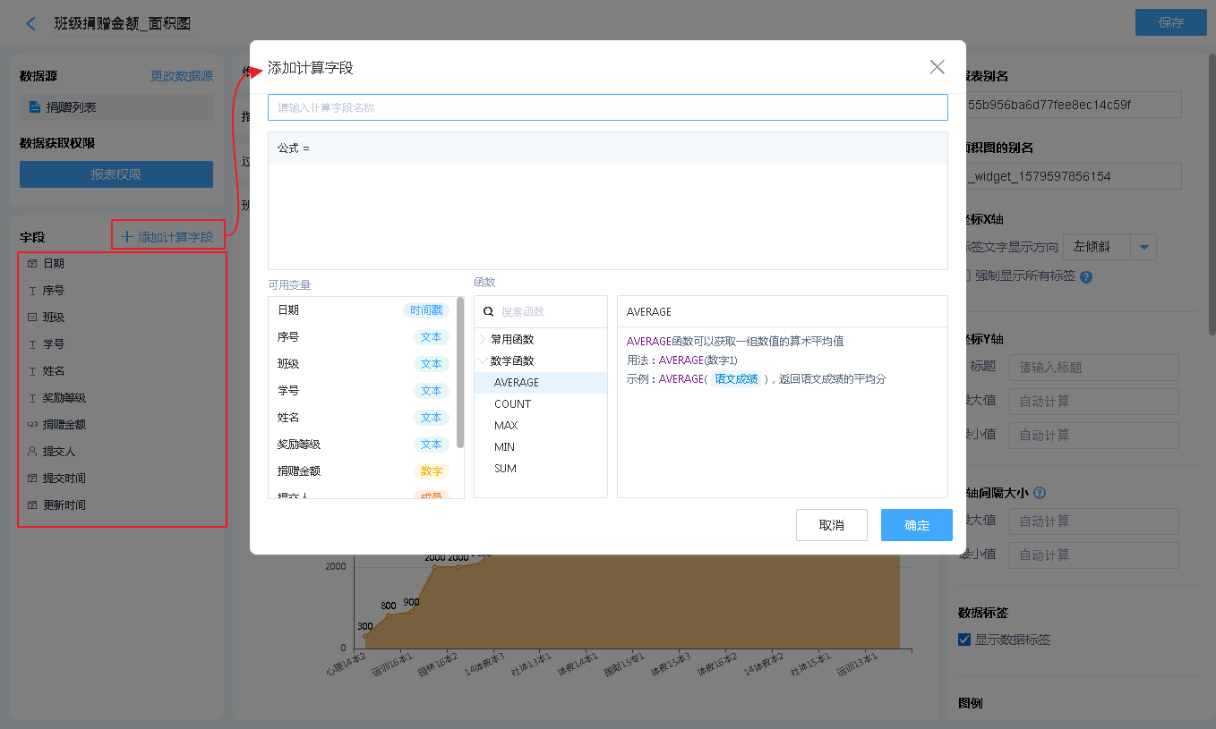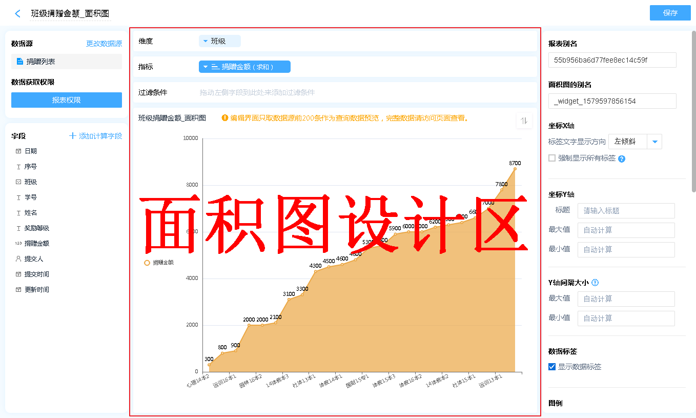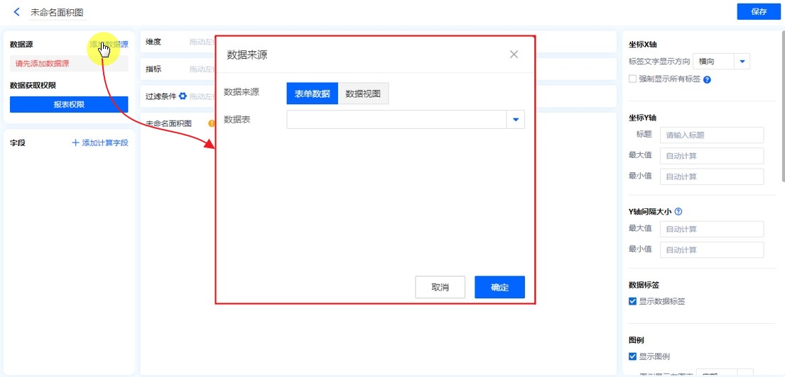 数据源就是指当前面积图表的数据来源,可以是表单、数据视图、聚合表。