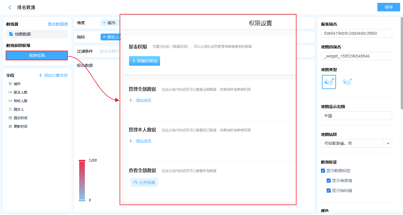 报表权限是指该报表的数据哪些人可以操作报表的数据,分别有什么操作权限。