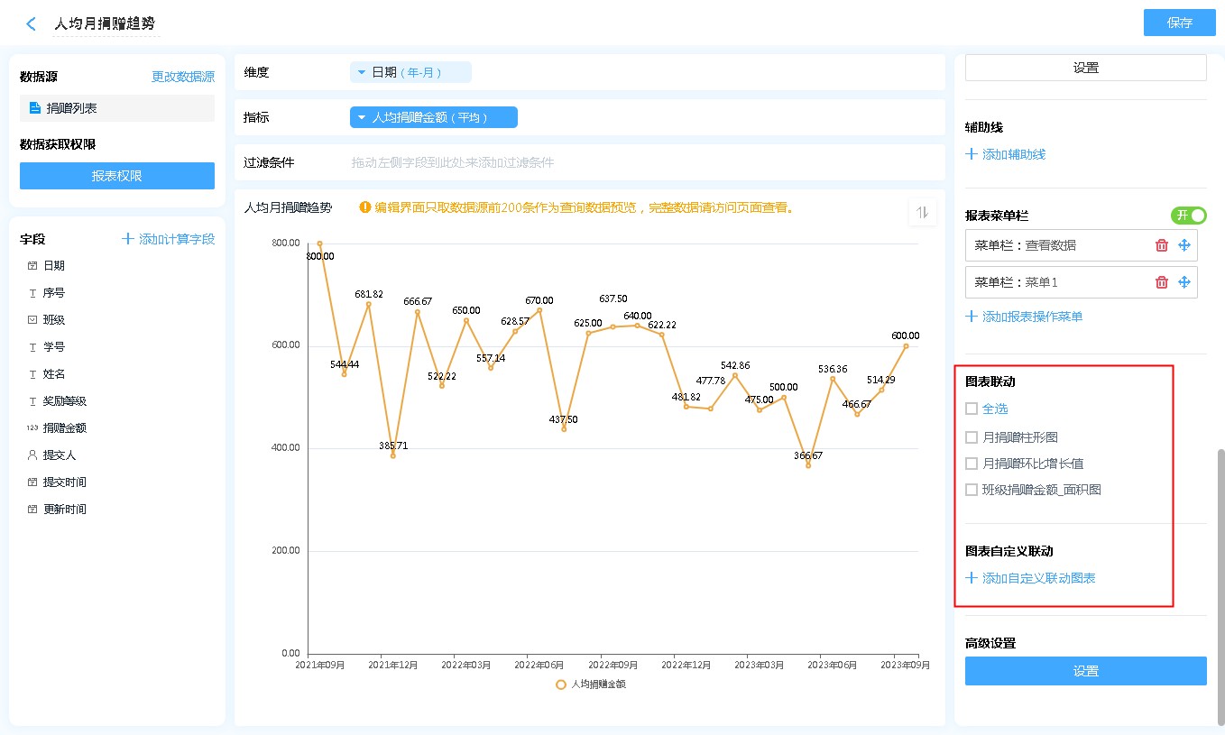 数据源就是指当前折线图表的数据来源,可以是表单、数据视图。