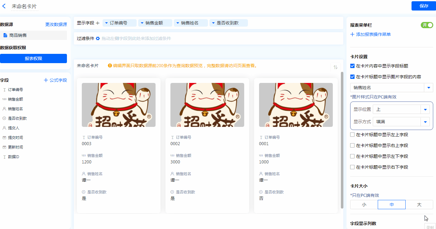 使用卡片报表,可以非常直观的找到自己想要的数据。