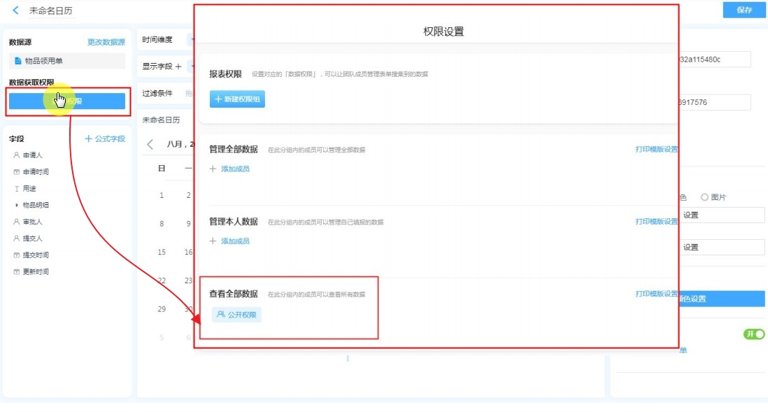 查看全部数据默认为公开权限,即如果不设置自定义的操作权限组,那么报表外链仅可供对外展示数据。