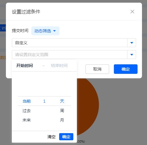 | 提交时间 | 等于、不等于、大于、大于等于、小于、小于等于、选择范围(自定义起始结束时间)、为空、不为空 | 固定值、今天、昨天、本周、上周、本月、上月、今年、过去七天 | |